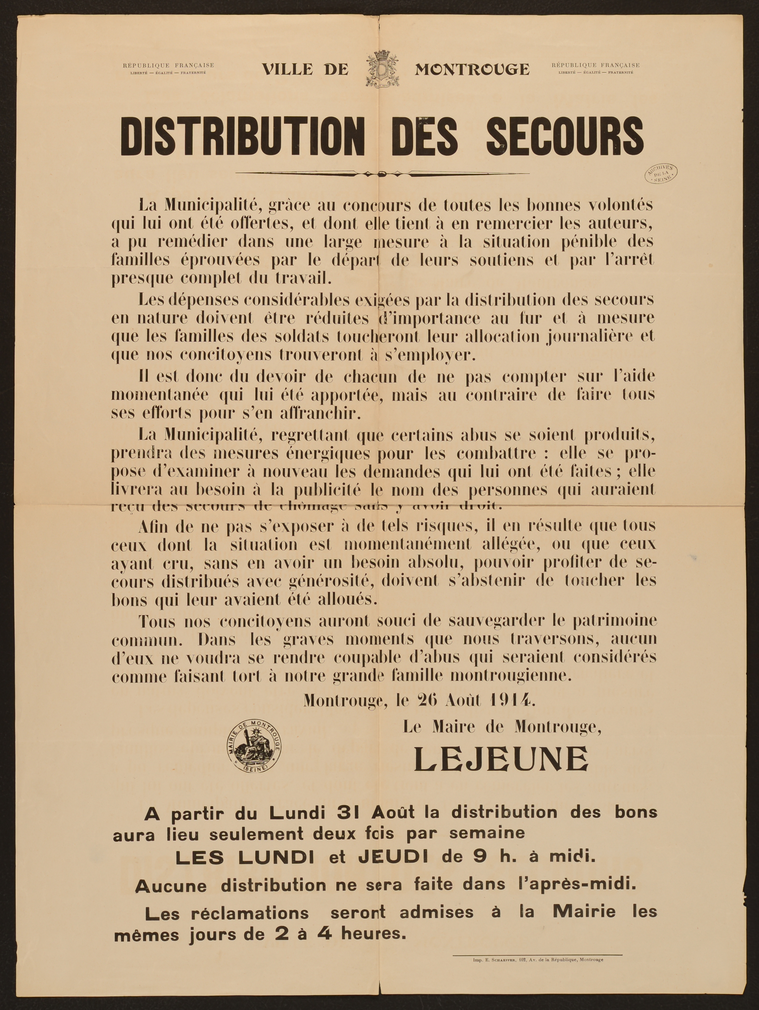 Affiche Avis Relatif A La Distribution Des Allocations Francearchives